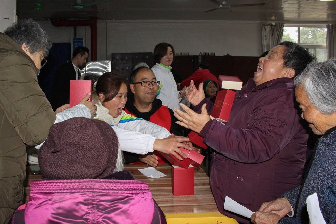 今天下午我第一次參加了單位志愿者與海寧義工組織在海昌敬老院開展“歡樂冬至迎元旦”活動,從敬老院回來,有很多感慨。陪著老人們一起做游戲,看著老人們拿著單子完成一個個游戲,看著他們游戲得了個高分,那開心樣子,我的心情比較沉重,覺得老人們平常缺少陪伴。