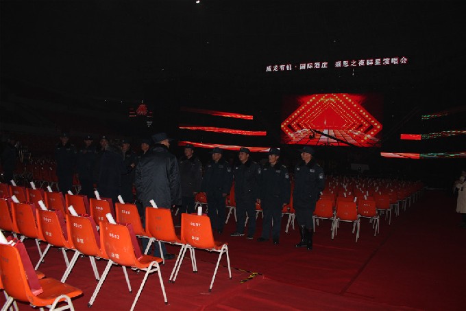 在這演員高歌、觀眾歡呼、演出順利、秩序井然的背后,有海寧保安公司的全情投入、全力以赴。為了保證演唱會(huì)現(xiàn)場秩序安全平穩(wěn),我公司精選120名保安力量奔赴海寧體育館。
